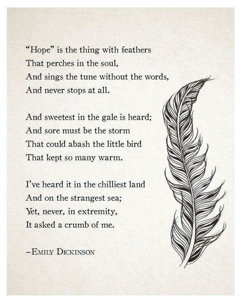 My Dad came over to see us very briefly to drop his shopping list for me and left us with a copy of the poem ‘Hope’ by Emily Dickinson.