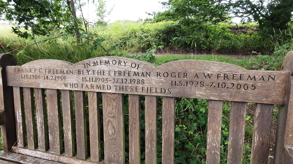 Two generations of a family who farmed the land we walked along this afternoon are remembered on this bench.