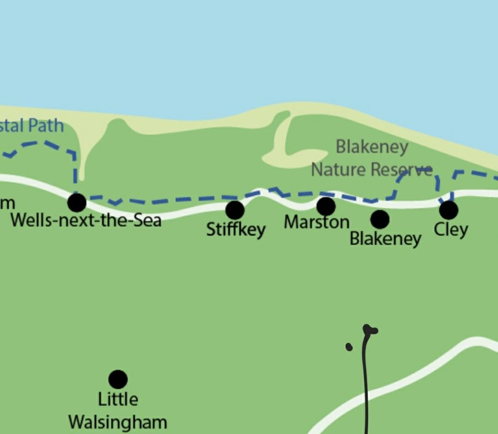 10.03am Third leg of the Norfolk Coastal Path today with the great and good of the Gentleman’s Film and Leisure Club. A 7.30am start and we drove to Cley-next-the-Sea to park. Then the coastal hopper bus along the coast road to Wells-next-the-Sea.