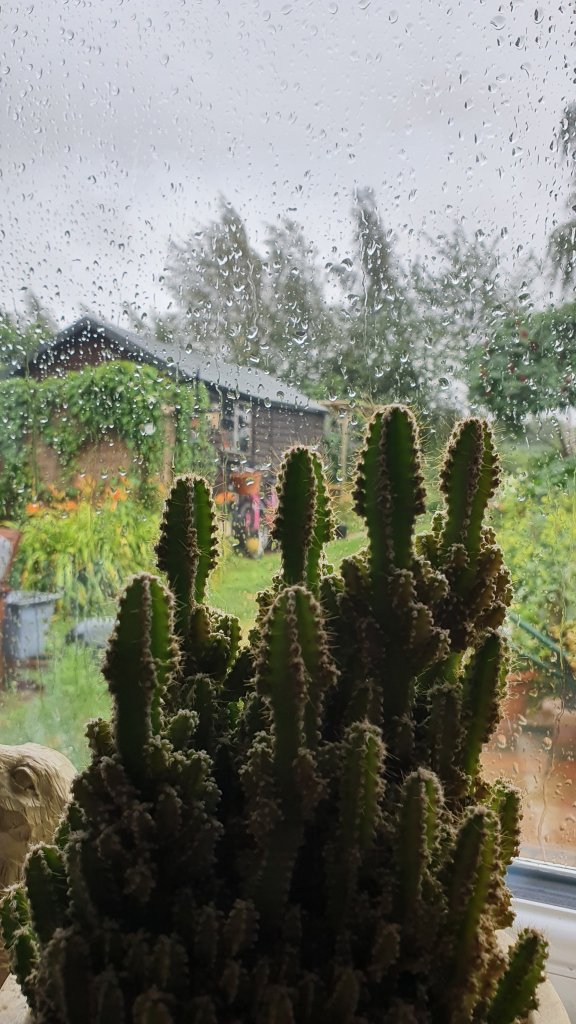 But right now, I’m sitting in the armchair by the window with a good book and a cup of tea. Watching the blackbirds peck the tray of mealworms, I notice the adults are accompanied by three juveniles. The rain is pit-patting on the windows and sky-lantern.