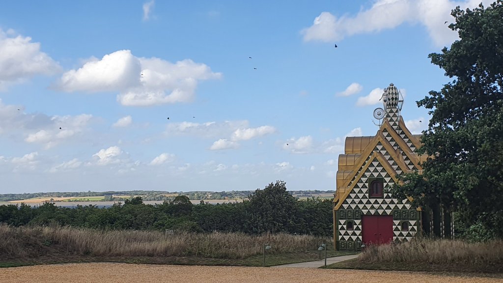 4.30pm The end if this walk as I arrive back at Wrabness and alongside Julie’s house by Grayson Perry. It’s dedicated to a fictitious single mum living in Essex who tragically dies after being run down by a delivery driver on a moped. The story goes that Julie was born in Dagenham and was a hairdresser in Colchester until her untimely death.