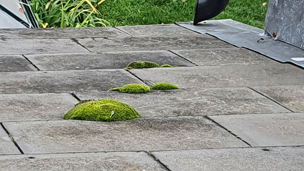 A couple of things pinged the bell of my local little world today. First, there’s this lump of moss that has been growing outside our bathroom window for as long as I can remember. In the summer it contracts and browns and appears to have finally died. But this morning it was lush and green and has been joined by a few other ‘lumps’.