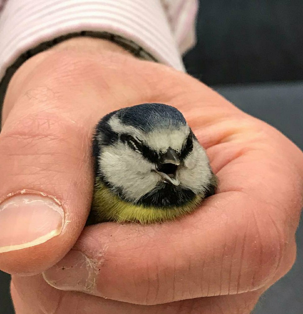 Carefully, opening the door just enough to slip out sideways, I gathered the anxious blue tit up in my cupped hands. Arching my thumbs around its nape I used my elbows to nudge my door entry badge against the reader, unlocking it. Moments like this don’t happen often. An opportunity to see something so flitting and distant, so close up. It’s head lopped slightly to one side, and I feared that it would not recover.