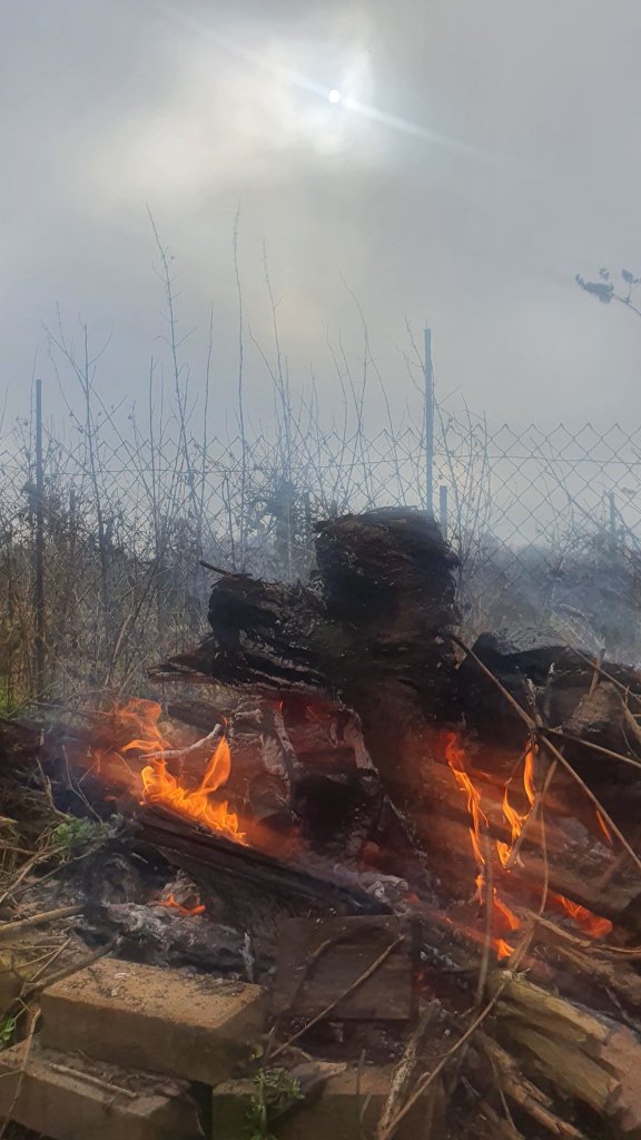 An opportunity to get out into the back garden and do a bit of a clear up and cut back. Then a fire to get rid. Some goes on the compost heap. The crackling and popping is quite therapeutic. As is watching the flames flicker and ripple, and the smoke rises into a cloudy sky where the sun is forcing it’s way through.