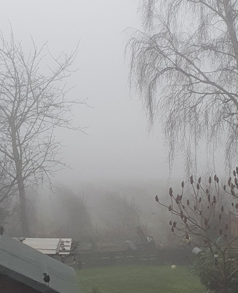 I may have woken with a little more metal clarity but the view outside was far from clear. “It’s foggy out there” I proclaimed to Lisa as I nudged the bedroom door open with my elbow. I put a couple of mugs of coffee on our bed side cabinets and picked up my phone to check the weather forecast for the rest of the day. “Actually it’s mist,” I said, “I’ve never known what the difference is.”