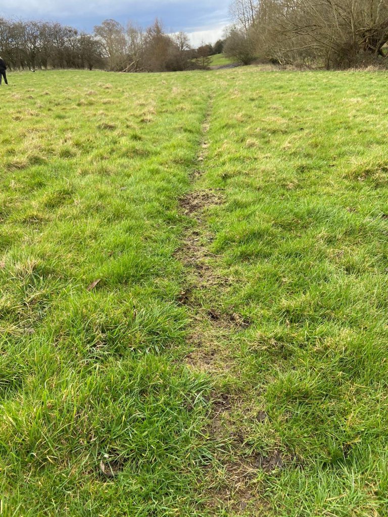 Then I notice a single, well-defined narrow track. It’s not big enough to have been caused by humans, surely. Animals often share tracks and paths between foraging spaces and can cut a pretty identifiable pathway through a field. The one we saw at the weekend is likely formed by badgers with contributions from other wildlife. Once it has formed a direct means of getting from A to B, many will use it every night. This also runs parallel to a stream, but not enough of a stream for an otter to have made it. And here we were, walking the same narrow track.